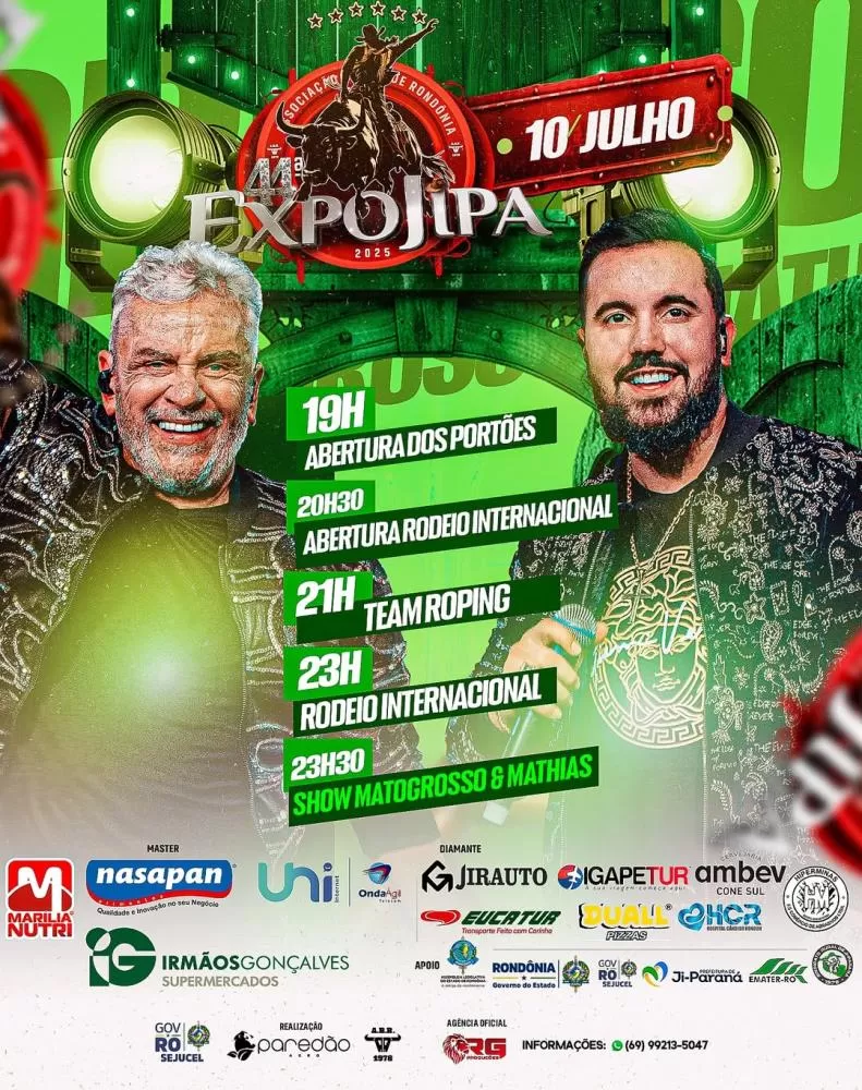A Expojipa 2025 segue até o dia 13 de julho, com mais shows, prêmios e provas que valorizam o agronegócio, a cultura e a tradição do povo de Ji-Paraná.