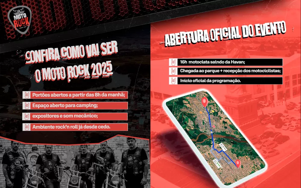 A programação começa cedo. A partir das 8h da manhã, o espaço estará aberto para os motociclistas, oferecendo área de camping, pontos de descanso e praça de alimentação. O objetivo é proporcionar integração, conforto e convivência entre os participantes, vindos de diversas regiões.